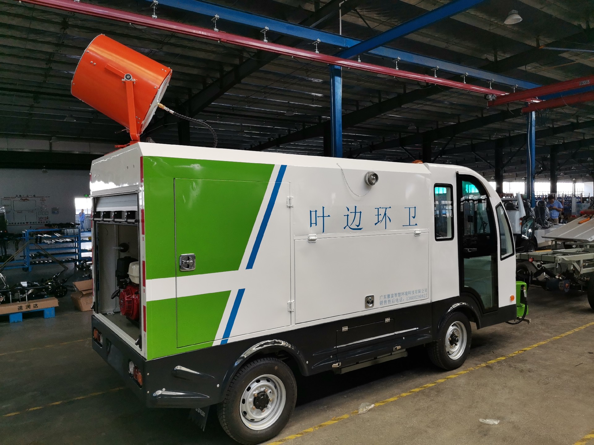 7 | 配備旋轉噴頭和噴桿,可以滿足沖洗和灑水功能,同時配備高壓水槍,可有效清除城市中小廣告、道板、護欄、路牙的死角等部位。 |